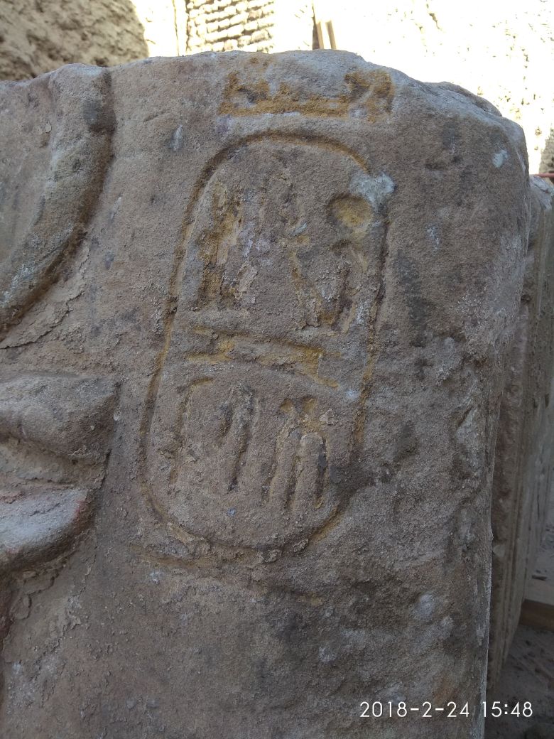 من جانبه أوضح محمد عبد البديع رئيس الإدارة المركزية لمصر العليا، أن هذا الجزء من التمثال يمثل الملك في الهيئة الأوزورية حيث تظهر اليدان متقاطعتان على الصدر وتمسكان بعلامة العنخ، كما يظهر جزء من الذقن الملكية، وهو لايزال يحتفظ ببقايا للالوان خاصة على اليدين، وتبلغ أبعاده 90 x140  سم بارتفاع يبلغ 75 سم، ومن المرجح أن ارتفاع التمثال كاملا يصل إلي ما يزيد عن سبعة أمتار، وهو يشبه الي حد كبير التماثيل الملكية بمعبد الرمسيوم بالبر الغربي بالأقصر.