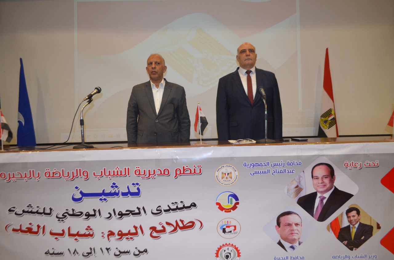 جاء ذلك بالتزامن مع تنفيذ منتدى الحوار الوطنى للنشء تحت شعار طلائع اليوم، شباب الغد للمرحلة السنية من ١٢ إلى ١٨ سنة بحضور اللواء محمد شوقى بدر السكرتير العام المساعد والدكتور إبراهيم خضر مدير مديرية الشباب والرياضة بالبحيرة