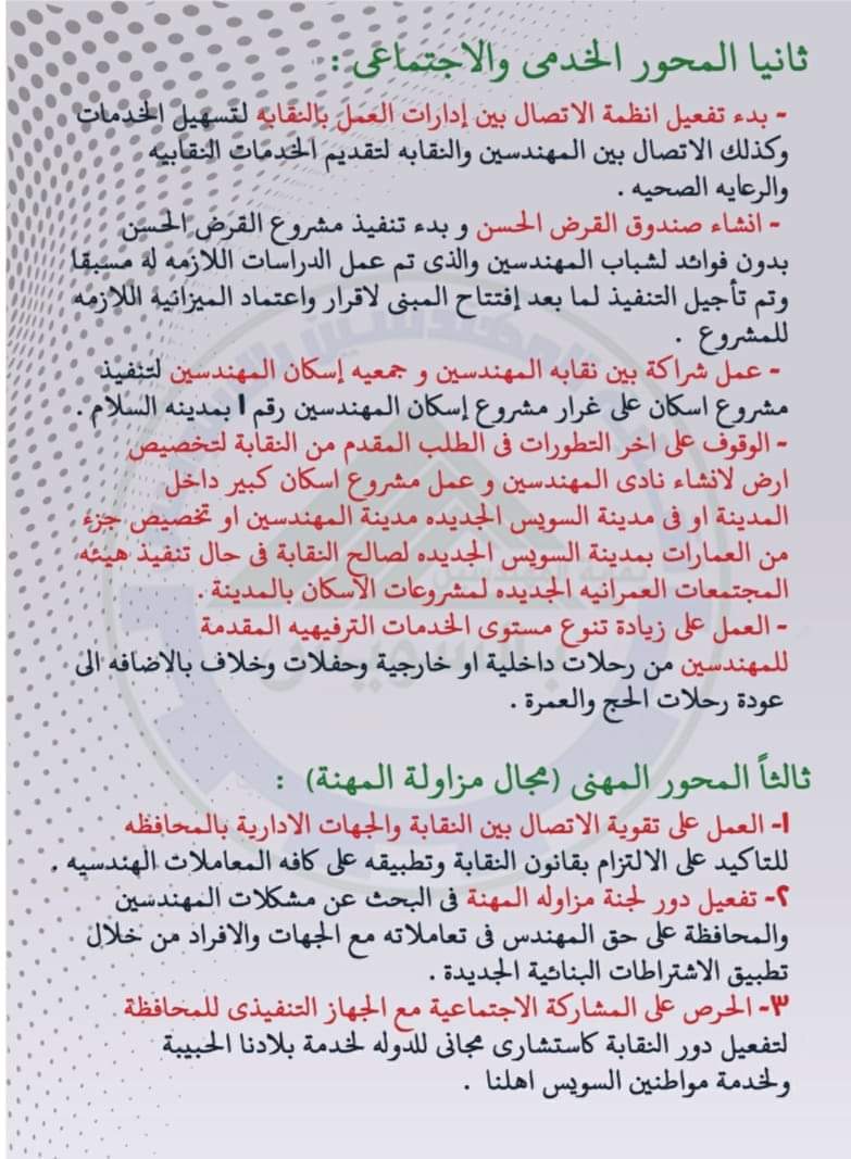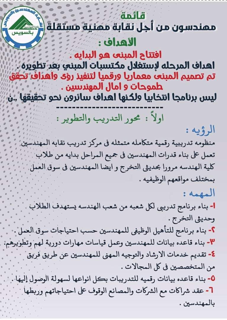بفكر جديد واستكمالا لمسيرة العطاء كل الدعم للمهندس حافظ عوض بإنتخابات نقابة المهندسين بالسويس