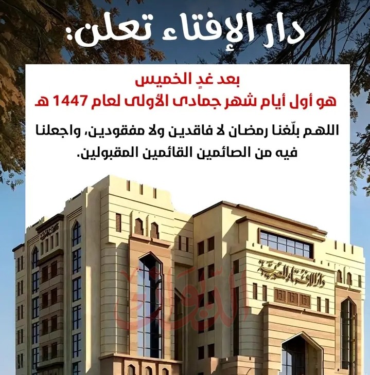 الإفتاء: الخميس أول أيام شهر جمادى الأول لعام 1447 هجريا