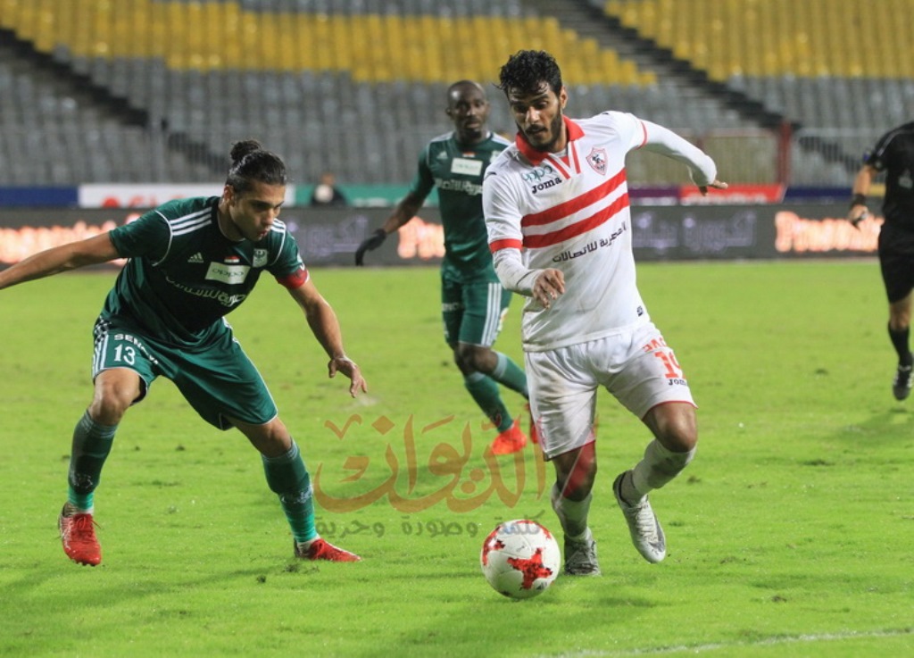 انتهى الشوط الأول من اللقاء بالتعادل السلبي وسيطر الزمالك على مجريات الشوط منذ بدايته عن طريق الثنائي عماد فتحي وأيمن حفني، اللذان ضمنا سيطرة الزمالك على الكرة في منتصف ملعب المصري.