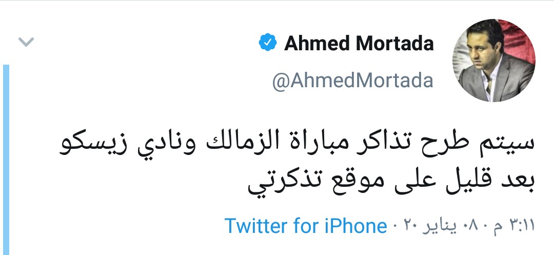 ونشر أحمد مرتضى عضو مجلس إدارة الزمالك عبر حسابه الشخصي بموقع تبادل التغريدات “تويتر” :تذاكر مباراة الزمالك ونادي زيسكو على موقع تذكرتي.
