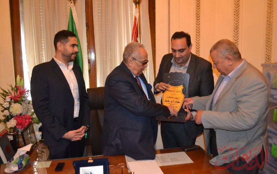 بالصور:رئيس حزب الدستور يهنئ” ابو شقة” ويقدم له درعاً لفوزه برئاسة حزب الوفد