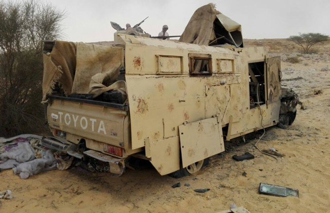 تمكنت قوات إنفاذ القانون بالجيش الثاني الميداني بشمال سيناء، بالتعاون مع القوات الجوية خلال الأيام القليلة الماضية، من القضاء على أحد العناصر التكفيرية شديدة الخطورة بحوزته بندقية آلية وأجهزة اتصال، واكتشاف وتدمير عربة دفع رباعي خاصة بالعناصر الإرهابية، يأتي ذلك في إطار الجهود المكثفة للقوات المسلحة لدحر الإرهاب.