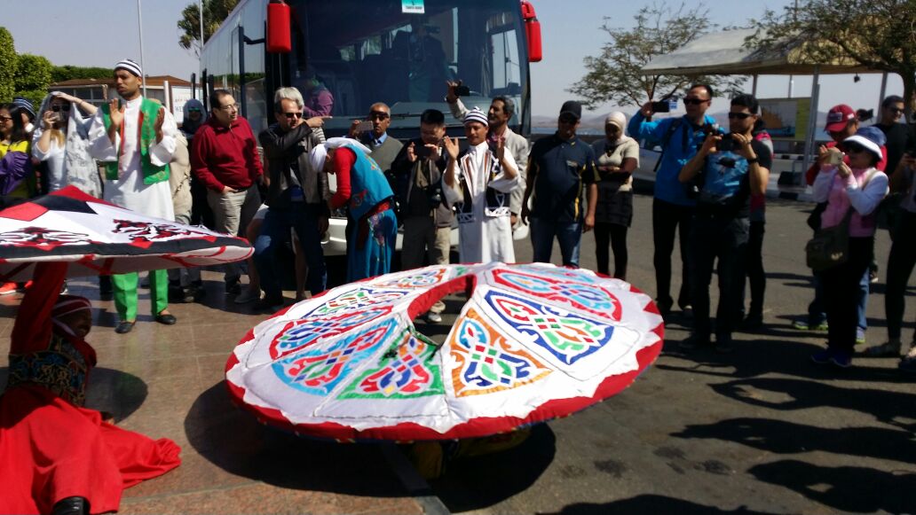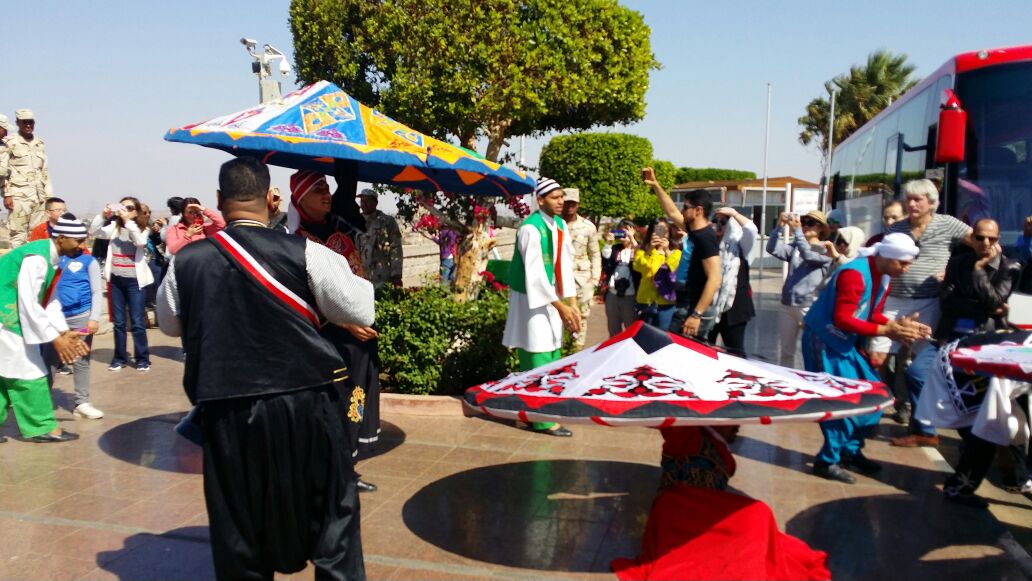 واستقبل مرسى معبد فيلة فرقتى سوهاج للفنون الشعبية وتوشكى التلقائية وقدمت فرقة سوهاج فقرة من عروضها الفنية المميزة.