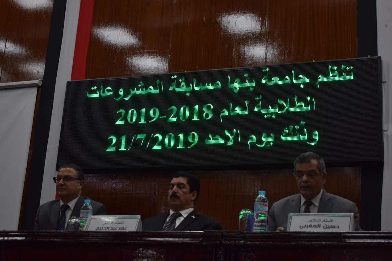 إفتتح الدكتور علاء عبدالحليم والدكتور جمال السعيد رئيس جامعة بنها والدكتور حسين المغربى نائب رئيس الجامعة لشئون التعليم والطلاب اليوم اعمال اول مسابقة للمشروعات الطلابية بقاعة الإحتفالات الكبرى.