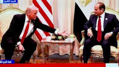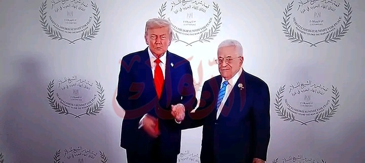 ترامب يصافح الرئيس الفلسطيني ويلتقط صورة تذكارية معه في قمة شرم الشيخ