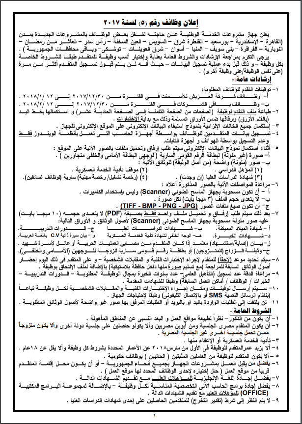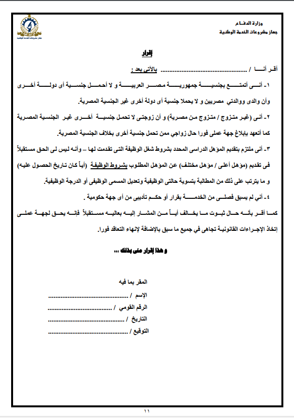 جهاز مشروعات الخدمة الوطنية يعلن عن وظائف لكافة المؤهلات