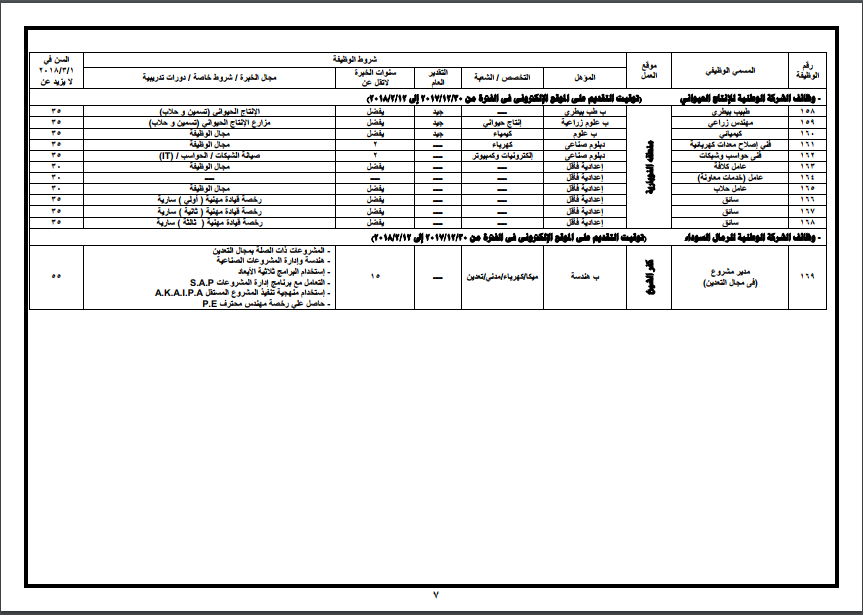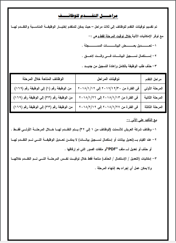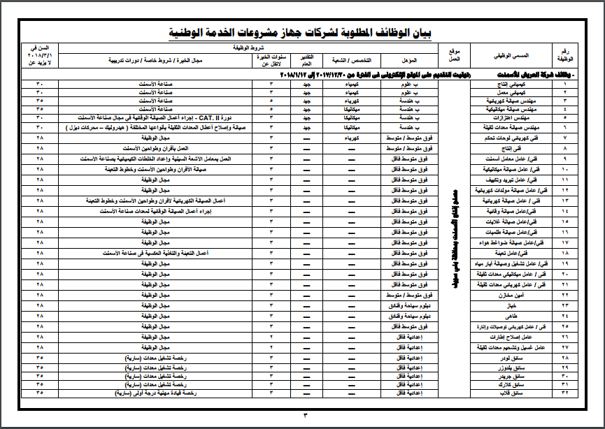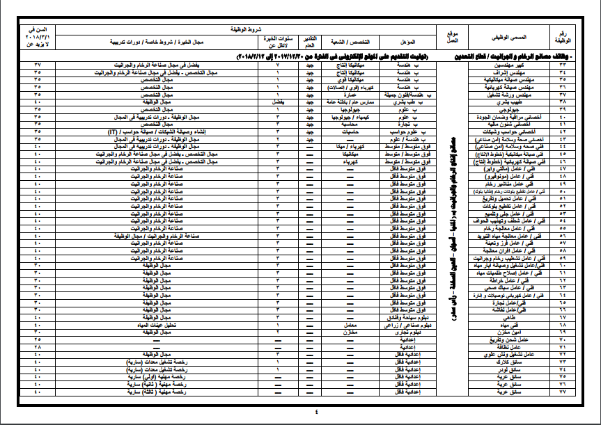 وتتضمن الوظائف خريجى علوم وهندسة ومؤهلات فوق متوسطة فأقل، ودبلوم سياحة وفنادق والحاصلين على إعدادية فأقل ، والدبلومات الفنية.