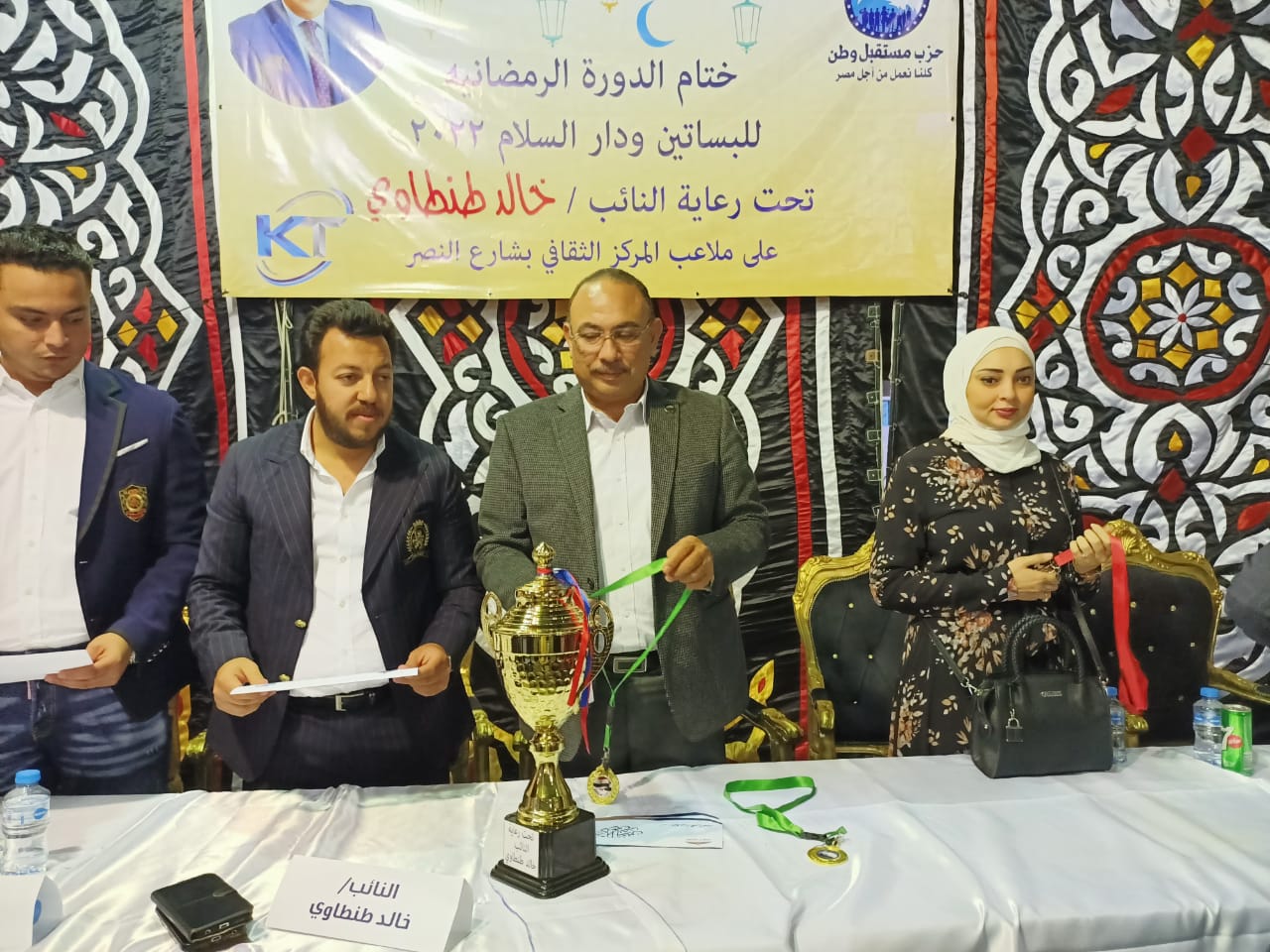 انتهت مساء الاربعاء الماضي فاعليات دورة كرة القدم الرمضانية برعاية النائب خالد طنطاوي عضو لجنة الدفاع ونائب البساتين ودار السلام والتي ضمت16 فريقا من أبناء البساتين ودار السلام واقيمت علي ملعب النادي الثقافي الاجتماعي