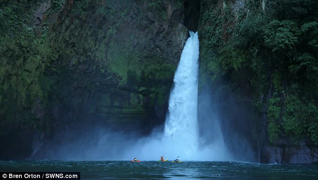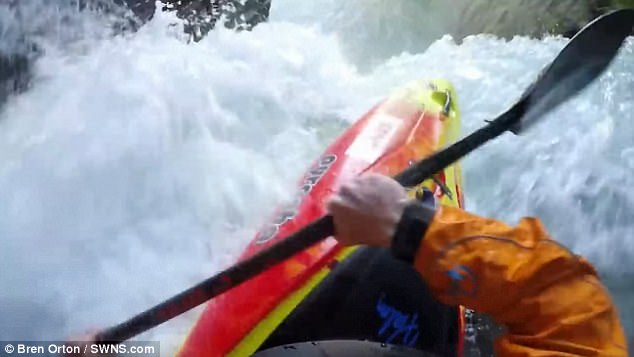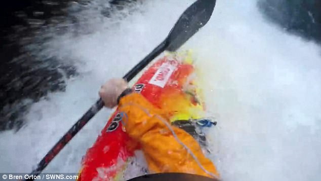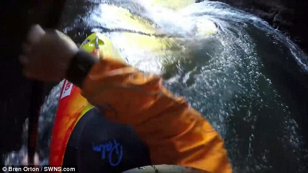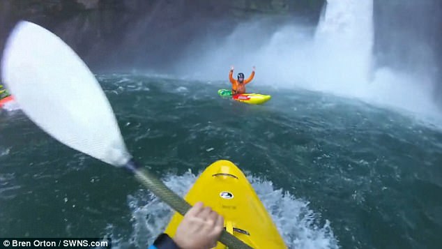 التقط الفيديو بواسطة كاميرا «جوبرو» وظهر الشاب يستخدم المجدافين حتى هبط بسلام في المياه أسفل الشلال ناجحا في إتمام مهمته التي خطط لها لعدة أسابيع.