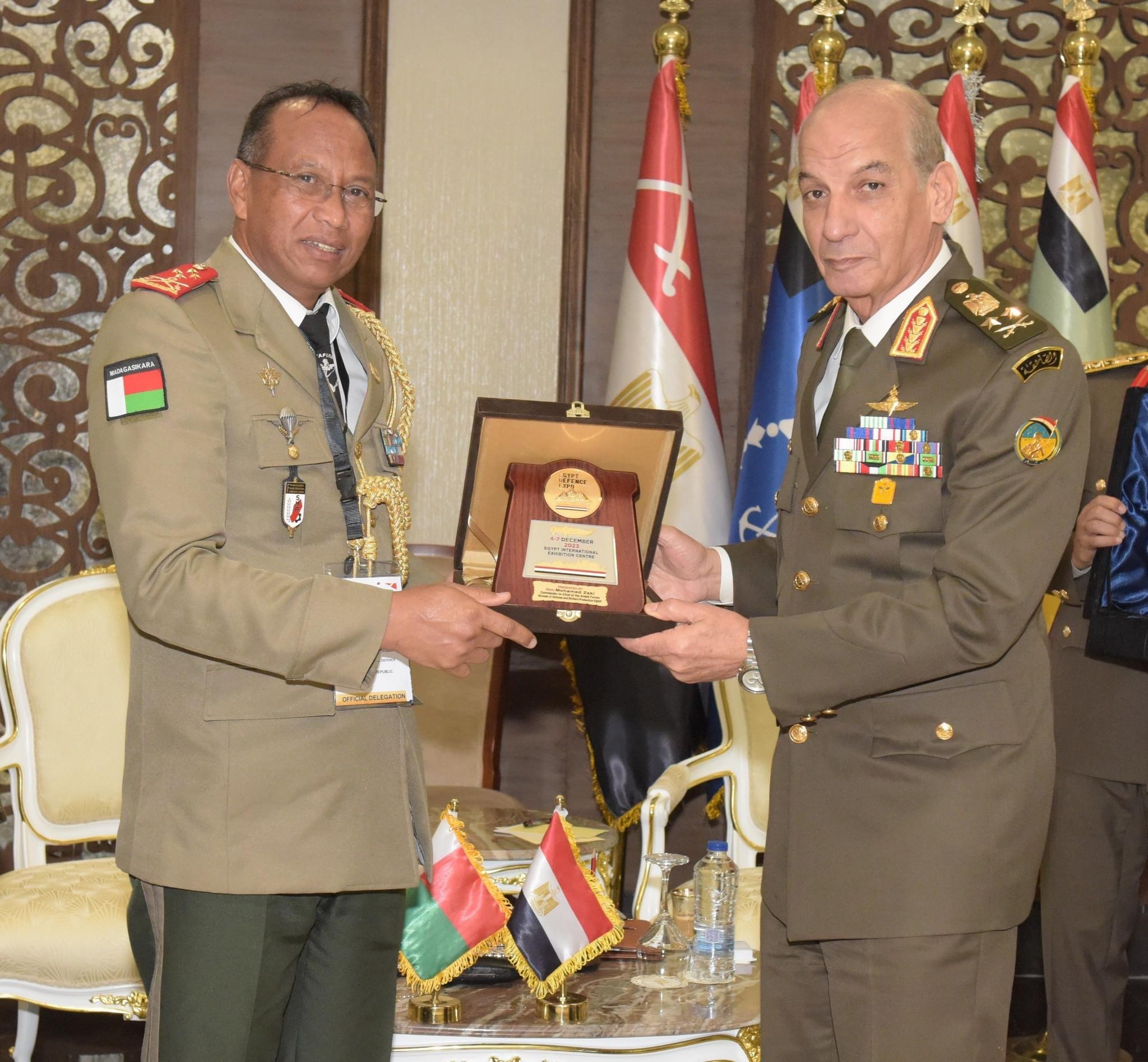 إلتقى الفريق أول محمد زكى القائد العام للقوات المسلحة وزير الدفاع والإنتاج الحربى الفريق راكوتواريجونا جوسوا وزير الدفاع الوطنى لجمهورية مدغشقر يرافقه اللواء سافيلو لالا مونجا ديلفن رئيس أركان الدفاع لجمهورية مدغشقر وذلك بحضور الفريق أسامة عسكر رئيس أركان حرب القوات المسلحة .