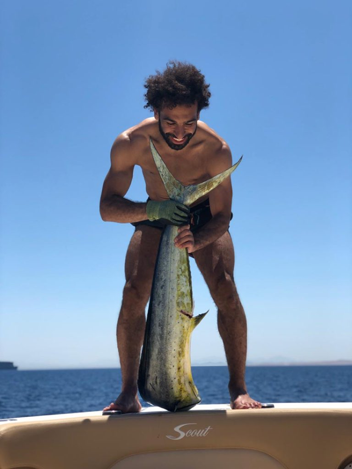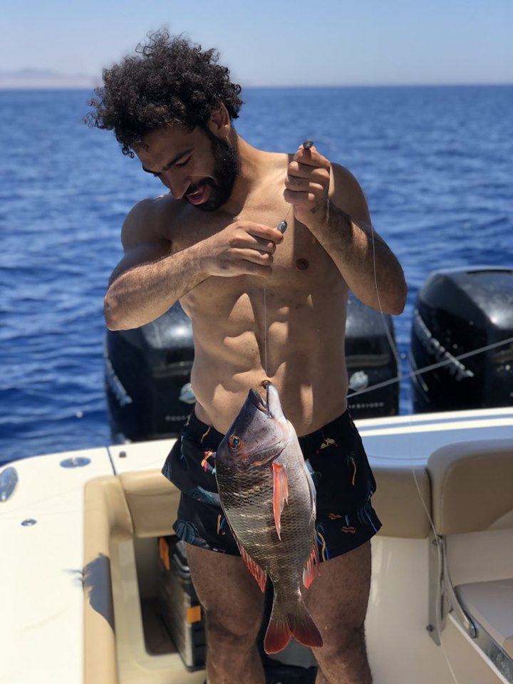 وظهر صلاح فى الصورة وهو يحمل سمكة قام باصطيادها، خلال رحلته بالغردقة، حيث يقضى إجازته الصيفية قبل انضمامه لمعسكر المنتخب الوطنى.