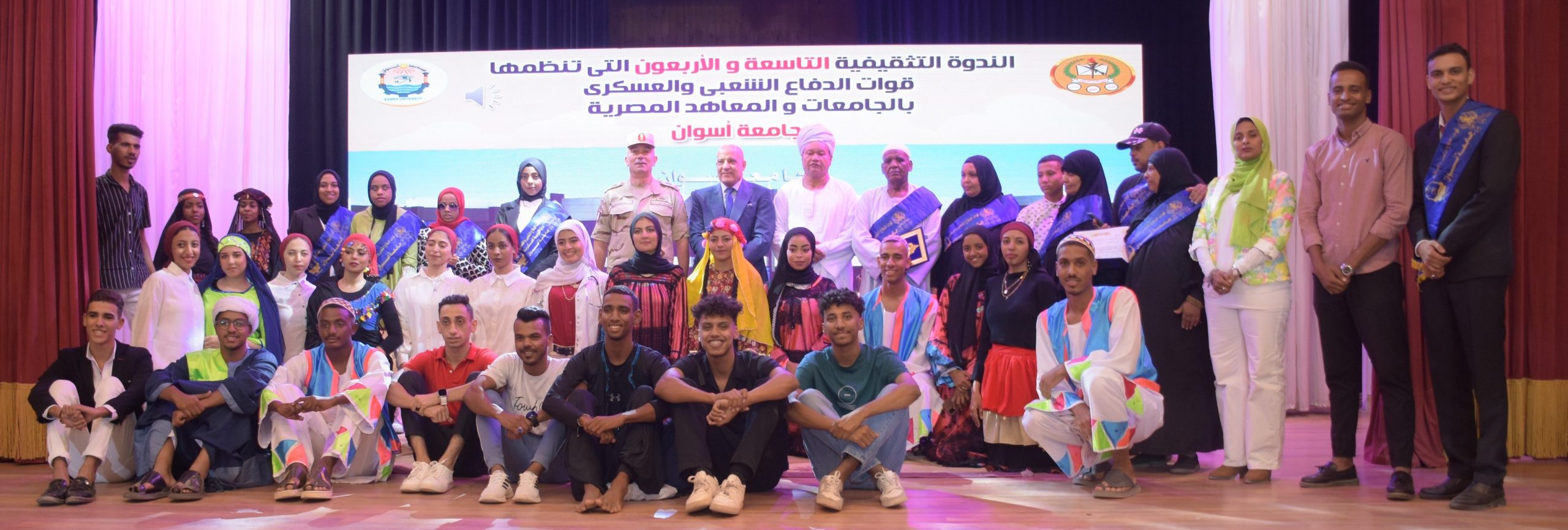 فى إطار نشر الوعى الثقافى لدى طلبة الجامعات ، قامت قيادة قوات الدفاع الشعبى والعسكرى بتنظيم ندوتين تثقيفيتين بجامعتى الأقصر وأسوان وذلك تزامناً مع الذكرى الخمسين لإنتصارات أكتوبر المجيدة .
