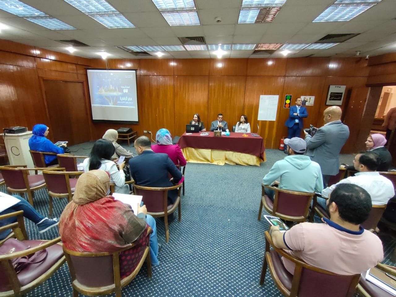 حضر اللقاء المهندس حازم الأشموني السكرتير العام للمحافظة واللواء محمد شوقى بدر السكرتير العام المساعد ود. راندا شفيق إمام مدير عام الإدارة العامة لتأهيل العاملين بالقطاع الحكومي وا. إبراهيم ولاش – مدير العمليات بالتطوير المؤسسي وم. هيثم فاروق – مدير مشروعات وحدات التحول الرقمي وعدد من قيادات التطوير المؤسسي بوزارة الاتصالات وتكنولوجيا المعلومات ورؤساء الوحدات المحلية ومديري المديريات والقيادات التنفيذية بالمحافظة.