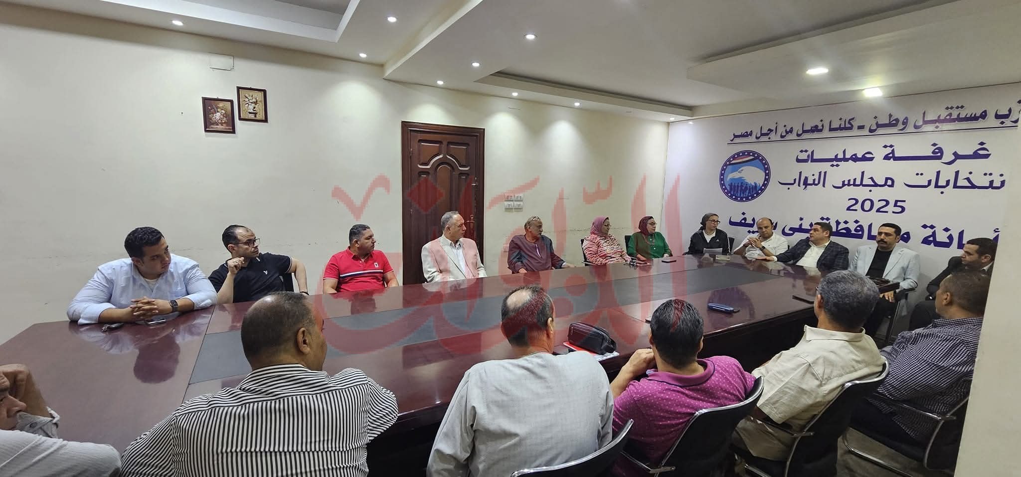 «مستقبل وطن» ببني سويف يعقد اجتماعًا بغرفة عمليات انتخابات مجلس النواب 2025 بحضور مرشحي الحزب