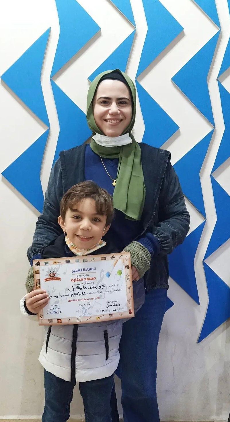 كرمت إدارة معهد قيثارة للموسيقى چوريك مايكل لحصوله على مستوى أساسيات الرسم