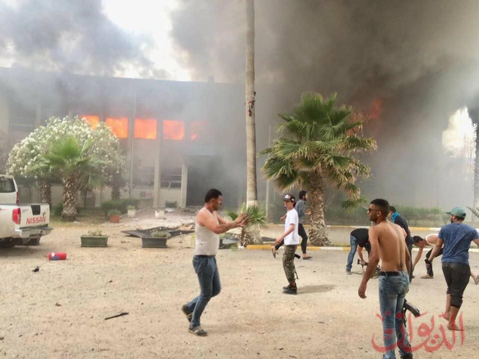 وأضاف ”انتحاري فجر نفسه داخل المقر وآخرون أشعلوا النار في جزء من المبنى… نحن الموظفون خارج المكان والأمن يتعامل مع الحادثة“.
