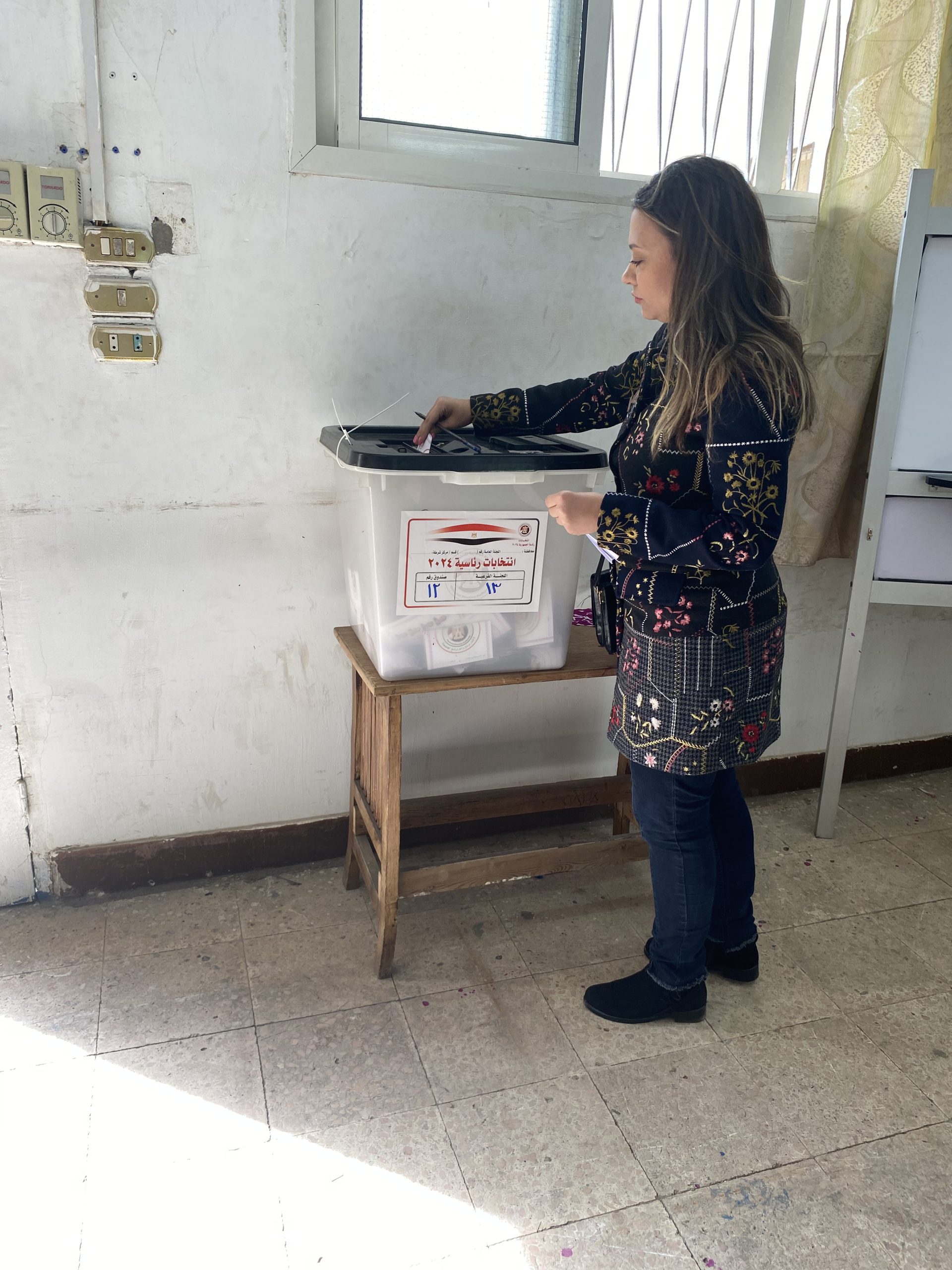 النائبة مي كرم جبر تصوت في الانتخابات الرئاسية وتدعوا المصريين للنزول حقكم الدستوري