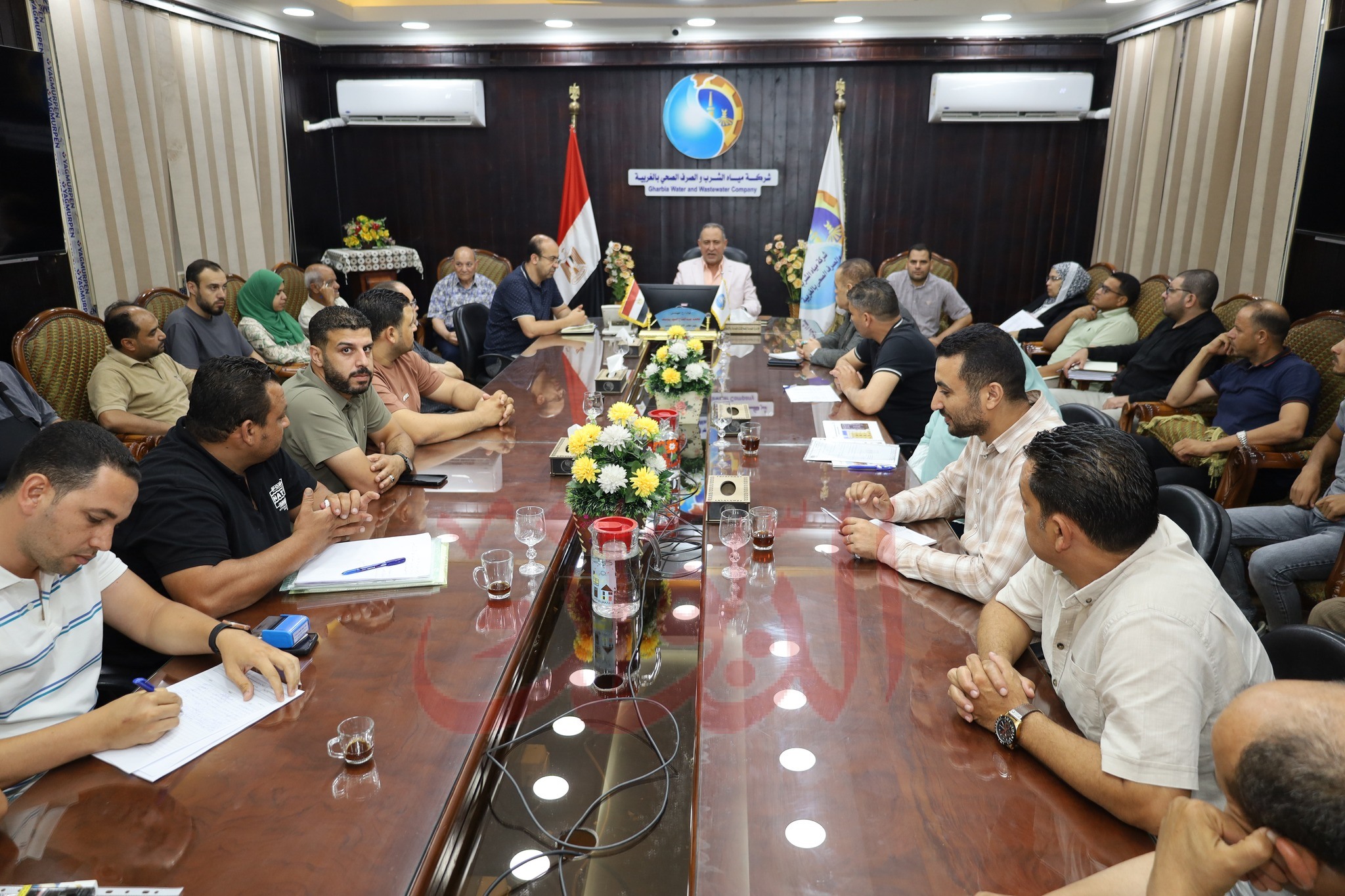 إجتمع اللواء أ. ح مهندس، محمد عبد الفتاح يوسف ، رئيس مجلس إدارة شركة مياه الشرب والصرف الصحي بالغربية ، والعضو المنتدب ، مع الشركات المنفذة والمقاولين وذلك لمتابعة نسب تنفيذ المشروعات بحضور عددا من قيادات الشركة التنفيذيين وشركات التنفيذ ومقاولي تنفيذ مشروعات حياة كريمة 1 ، 2 و التمويل الذاتي وتمويلات وزارة الاسكان و IWSP ، SRSSP.