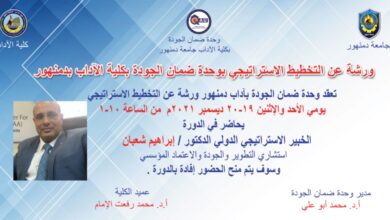 انتهاء الورشة التدريبية المتميزة عن التخطيط الاستراتيجي بكلية الآداب بدمنهور.